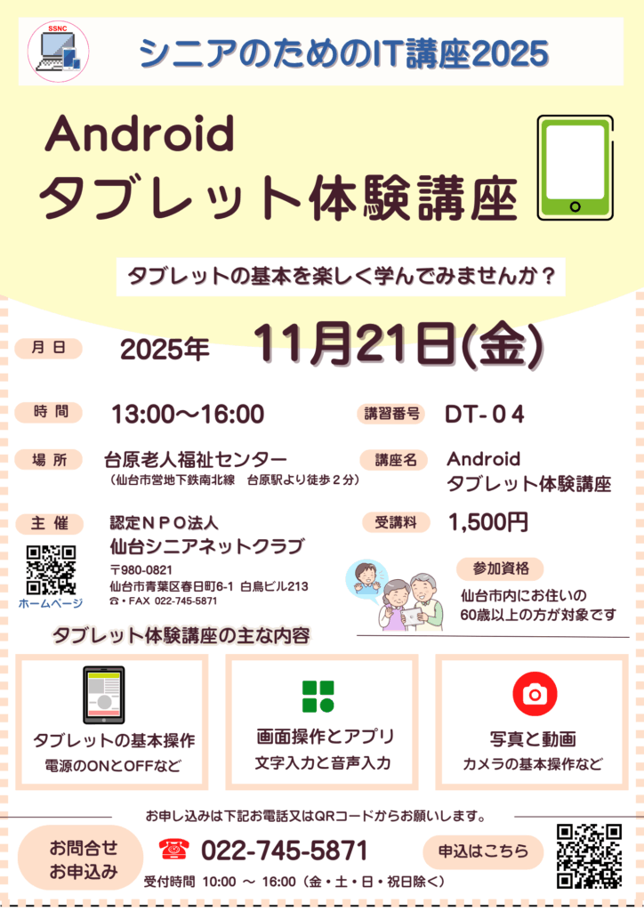 Androidタブレット体験講座のご案内